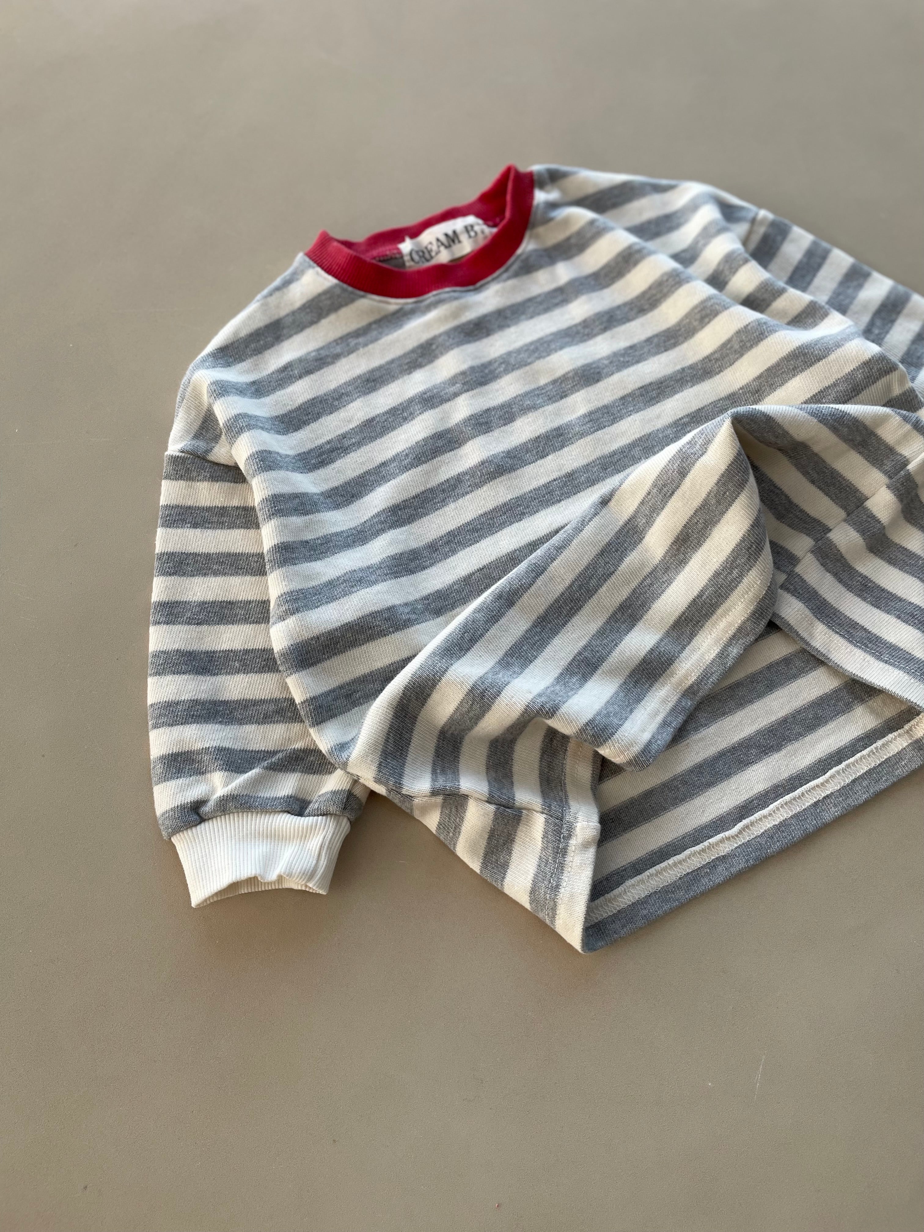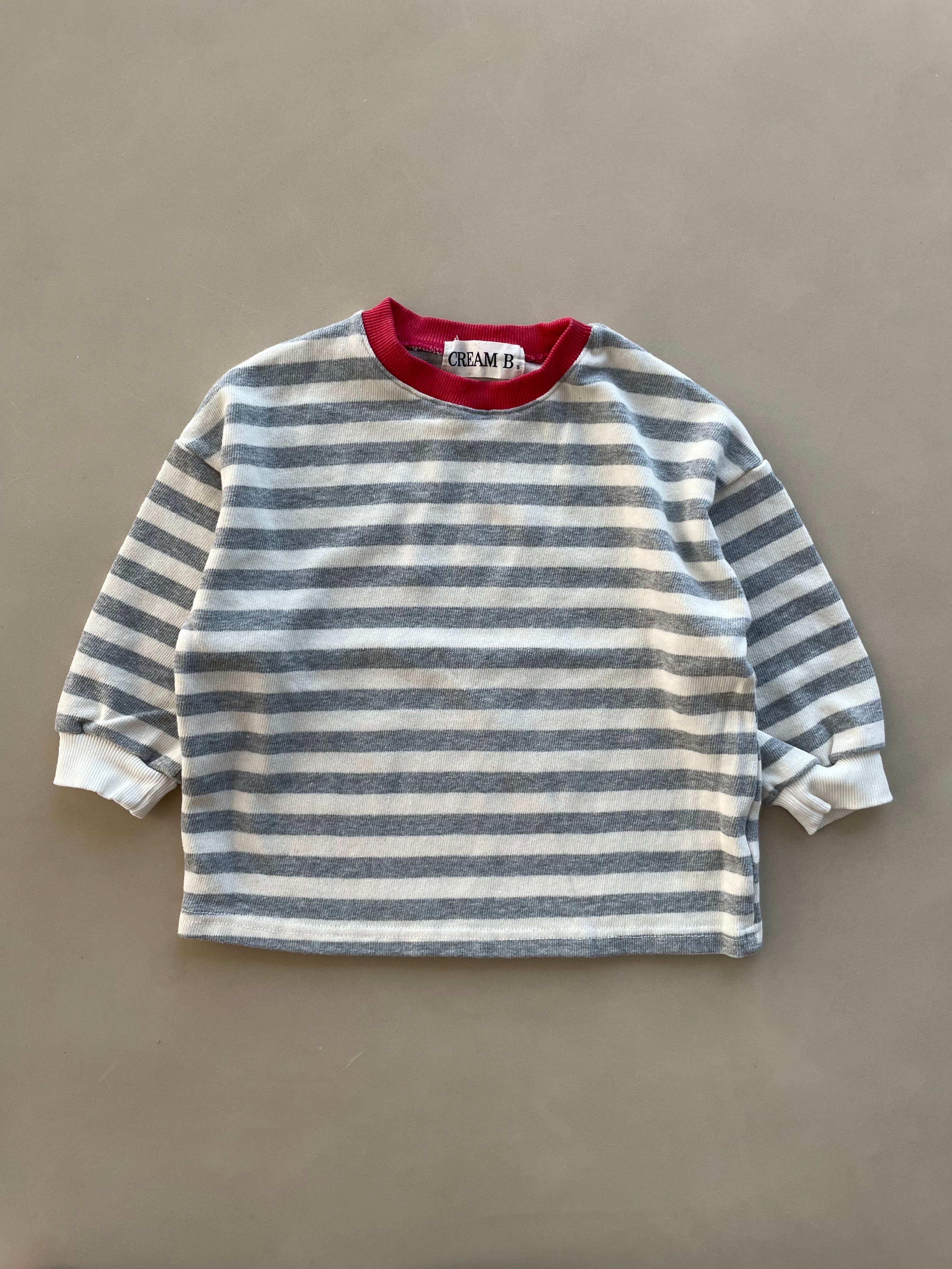 Oversize sweat with dropped shoulders and cuffs at wrists.
