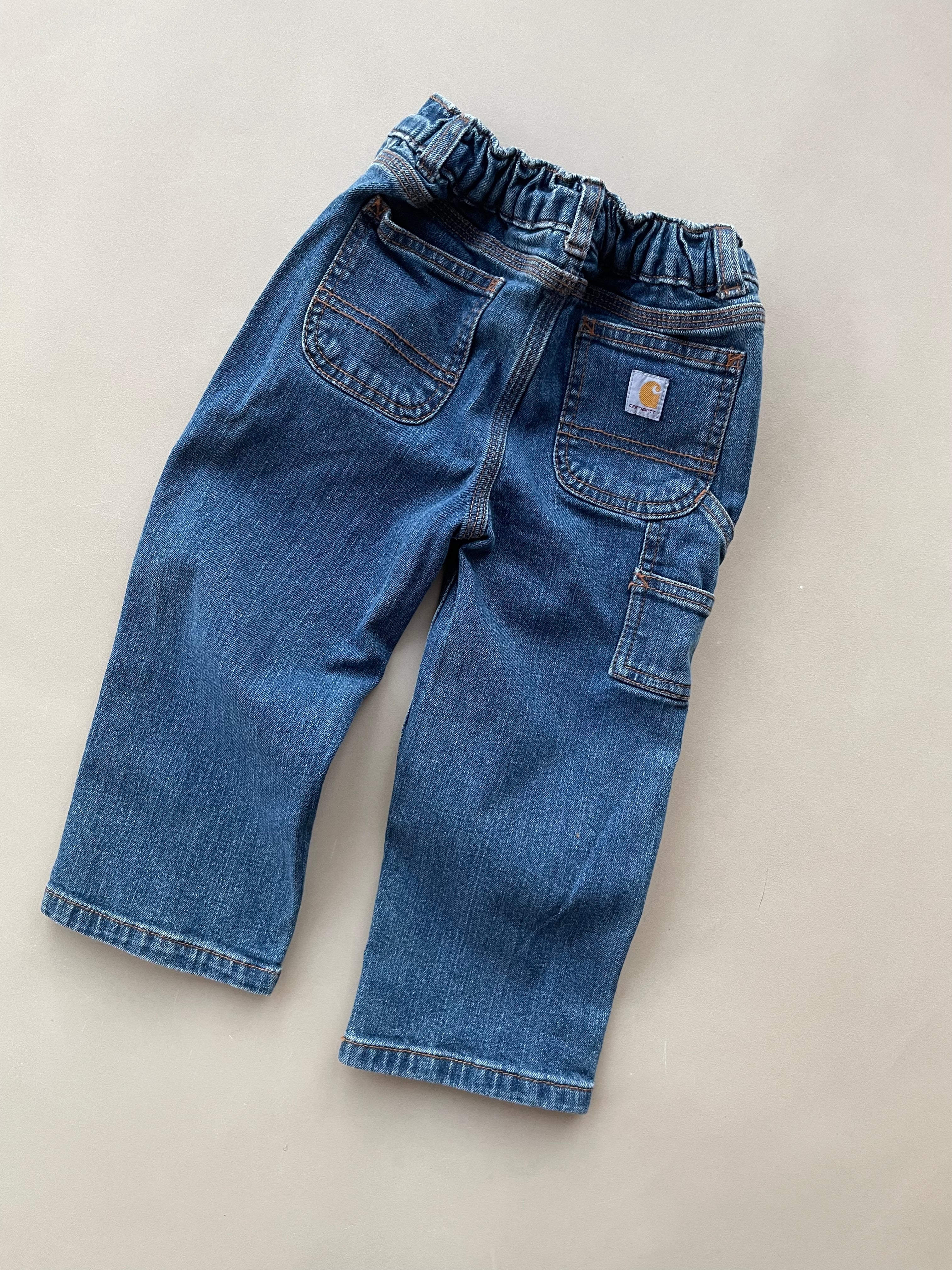 The coolest denim Carhartt pants in the durable material that Carhartt is known for. They have elastic waist, snap button and Carhartt branding on back.