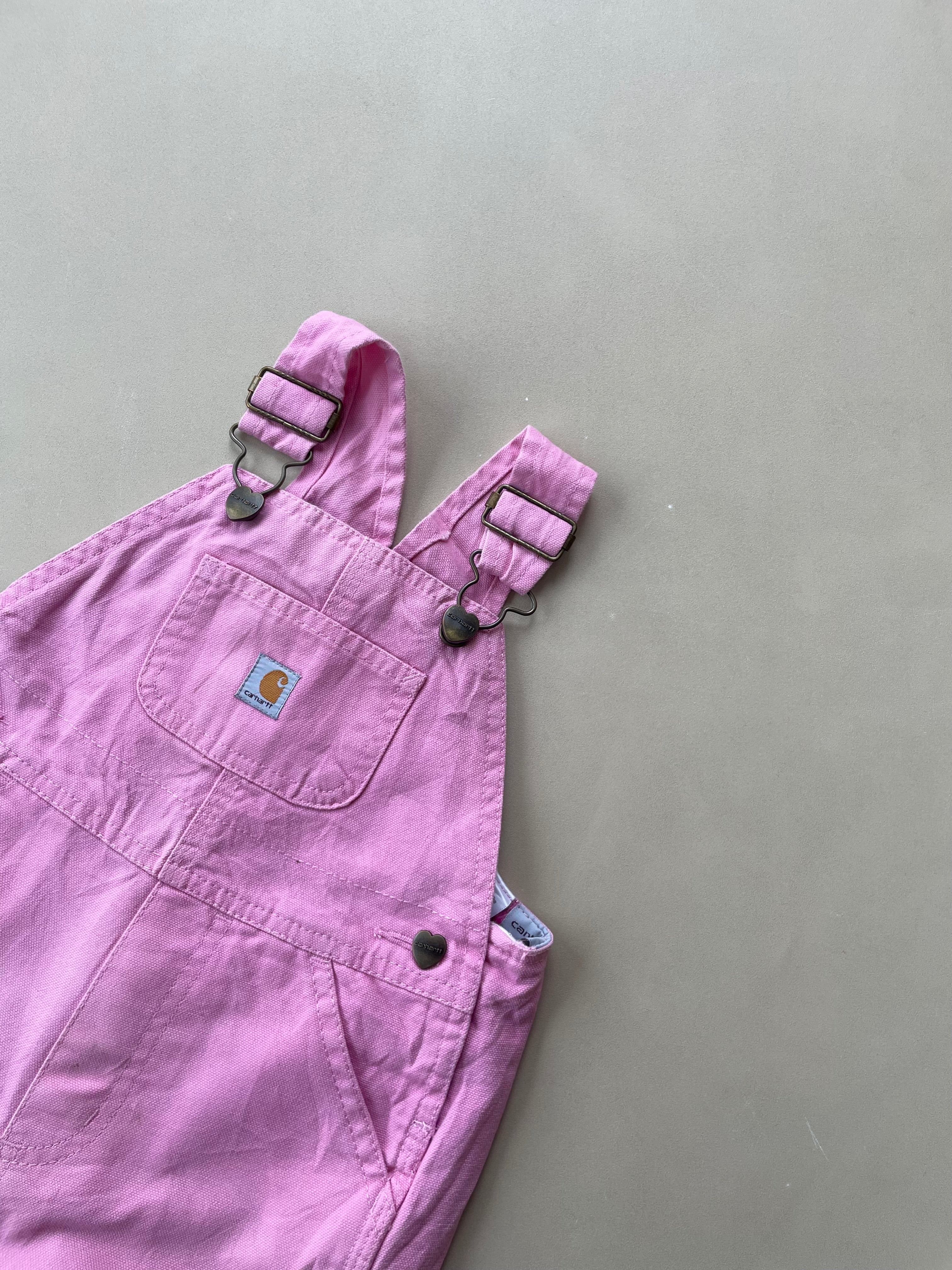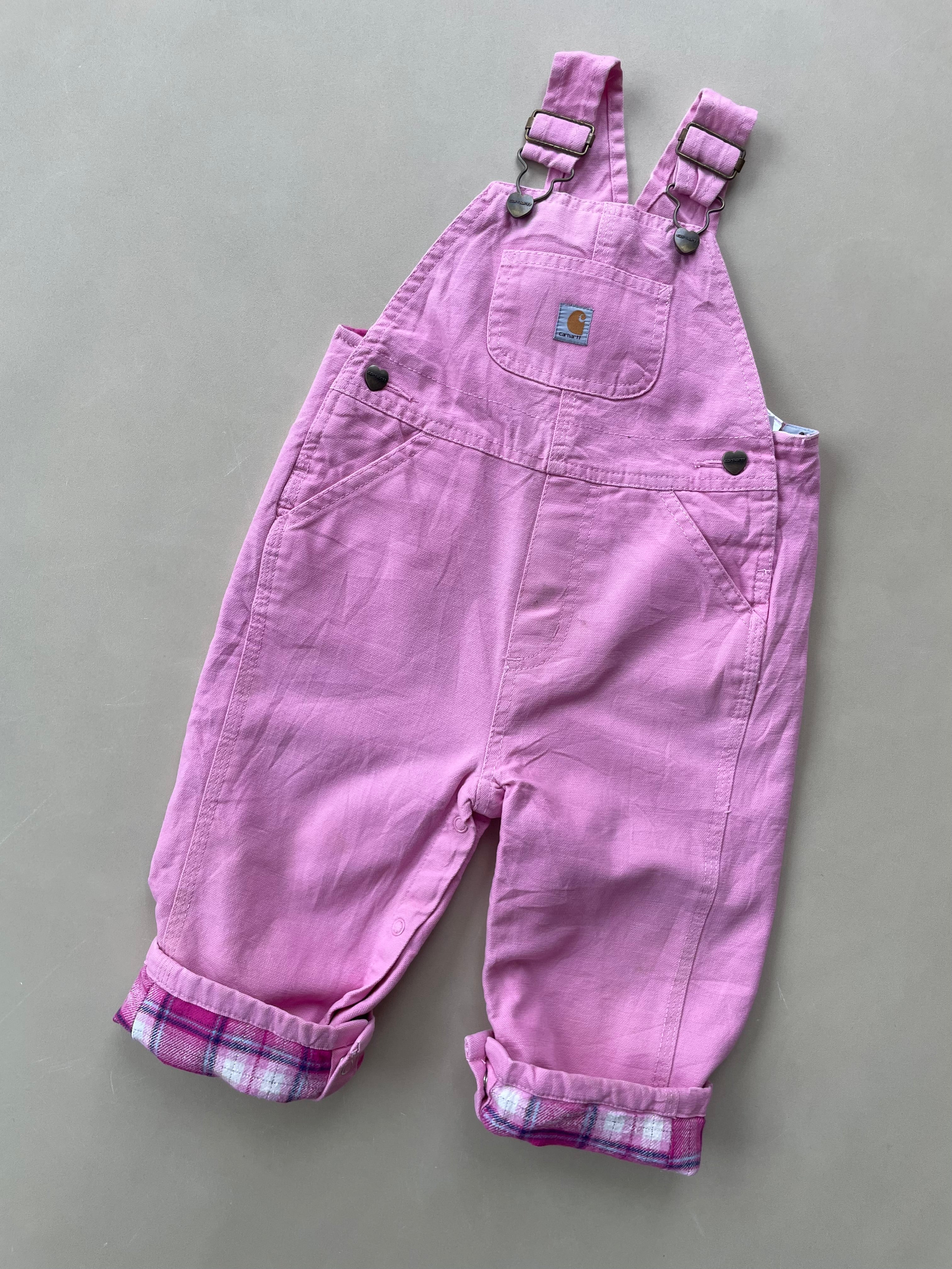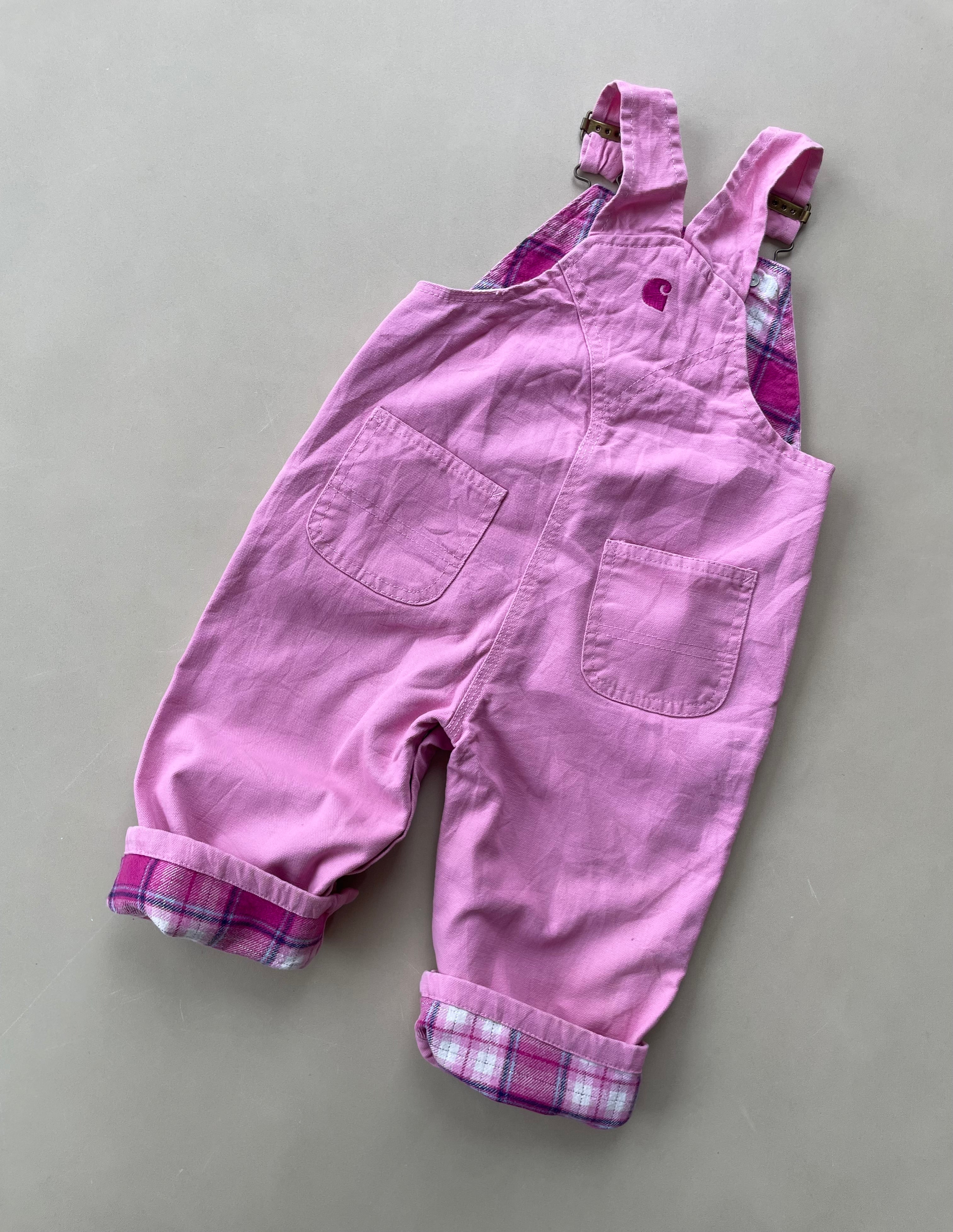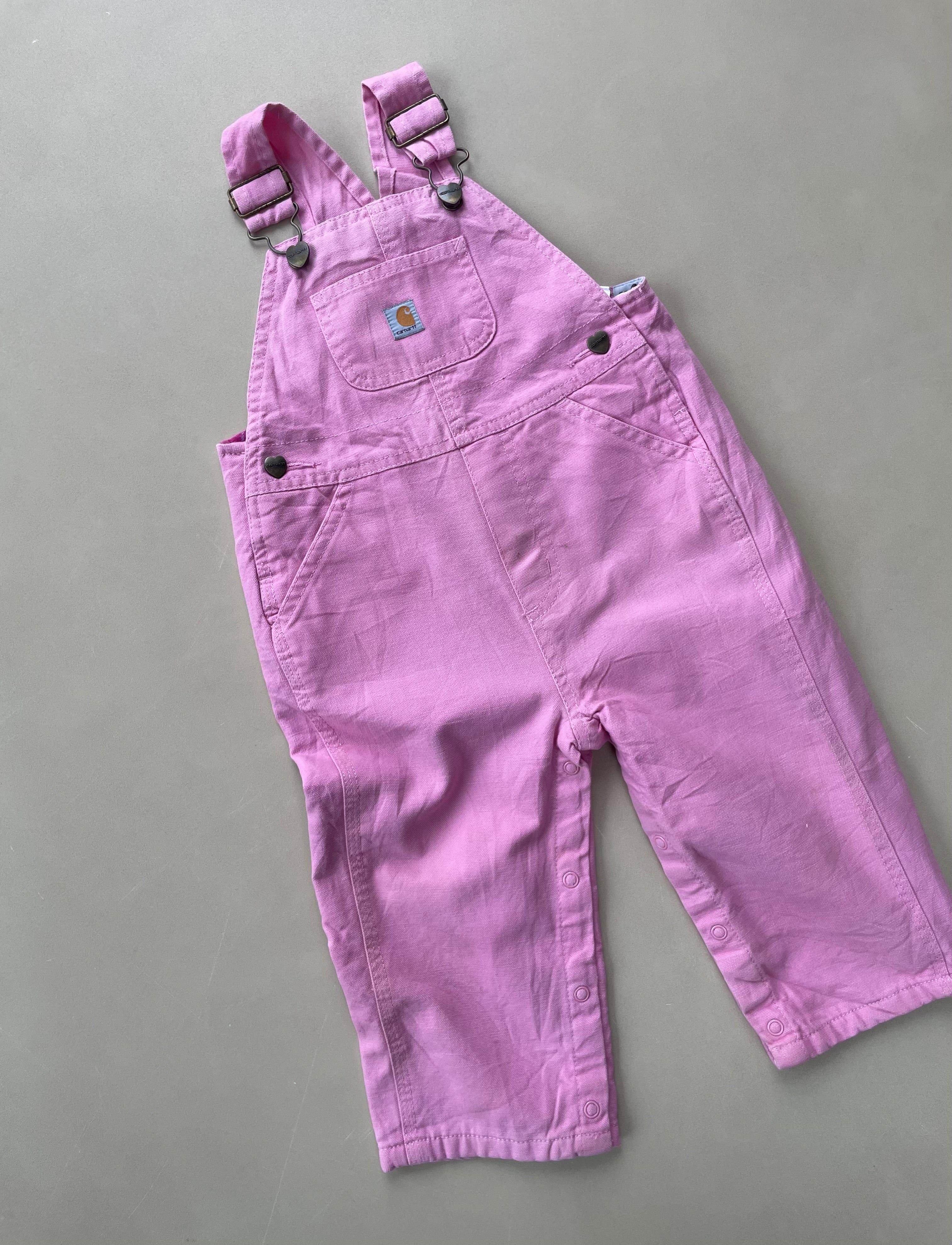 A classic pair of vintage workwear Carhartt overalls in the durable material that Carhartt is known for. They have Carhartt branding in front and on back. They are lined with a soft cotton lining.
