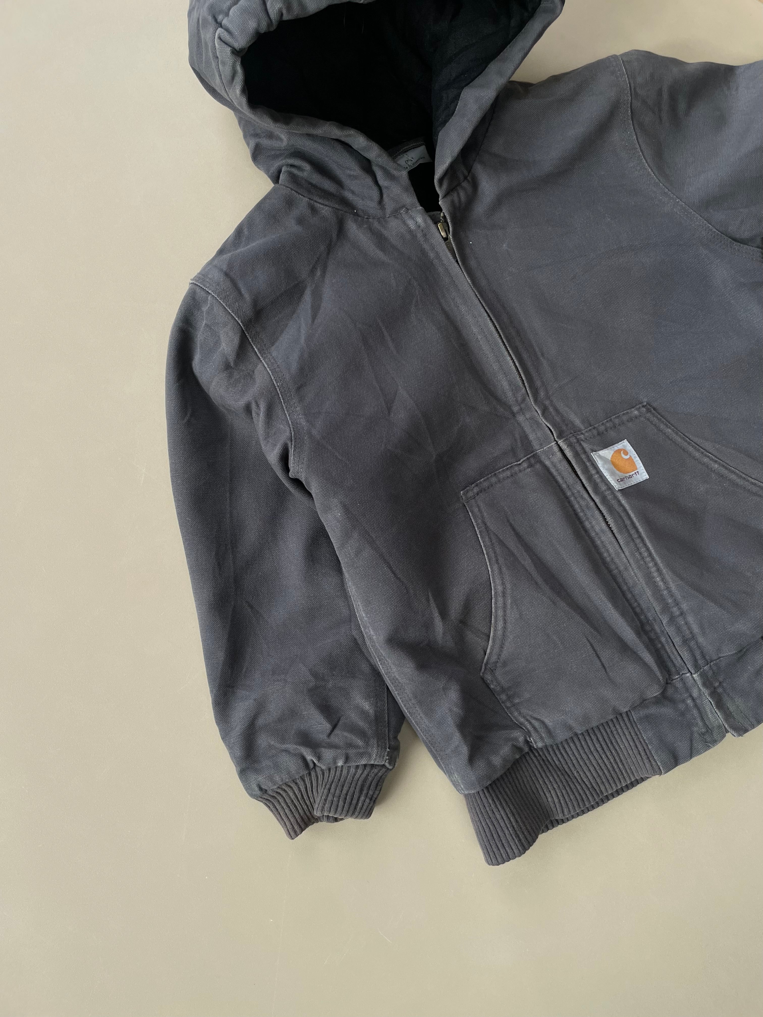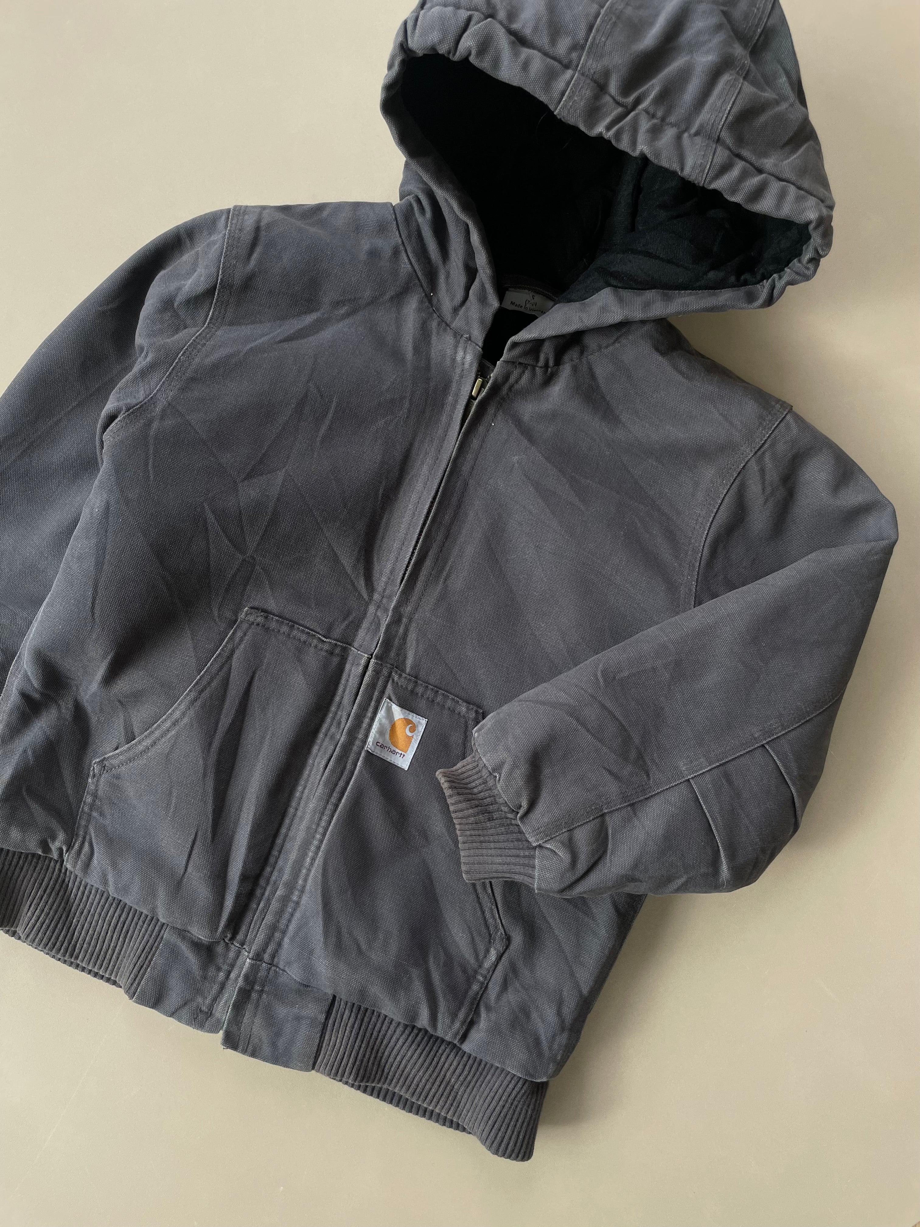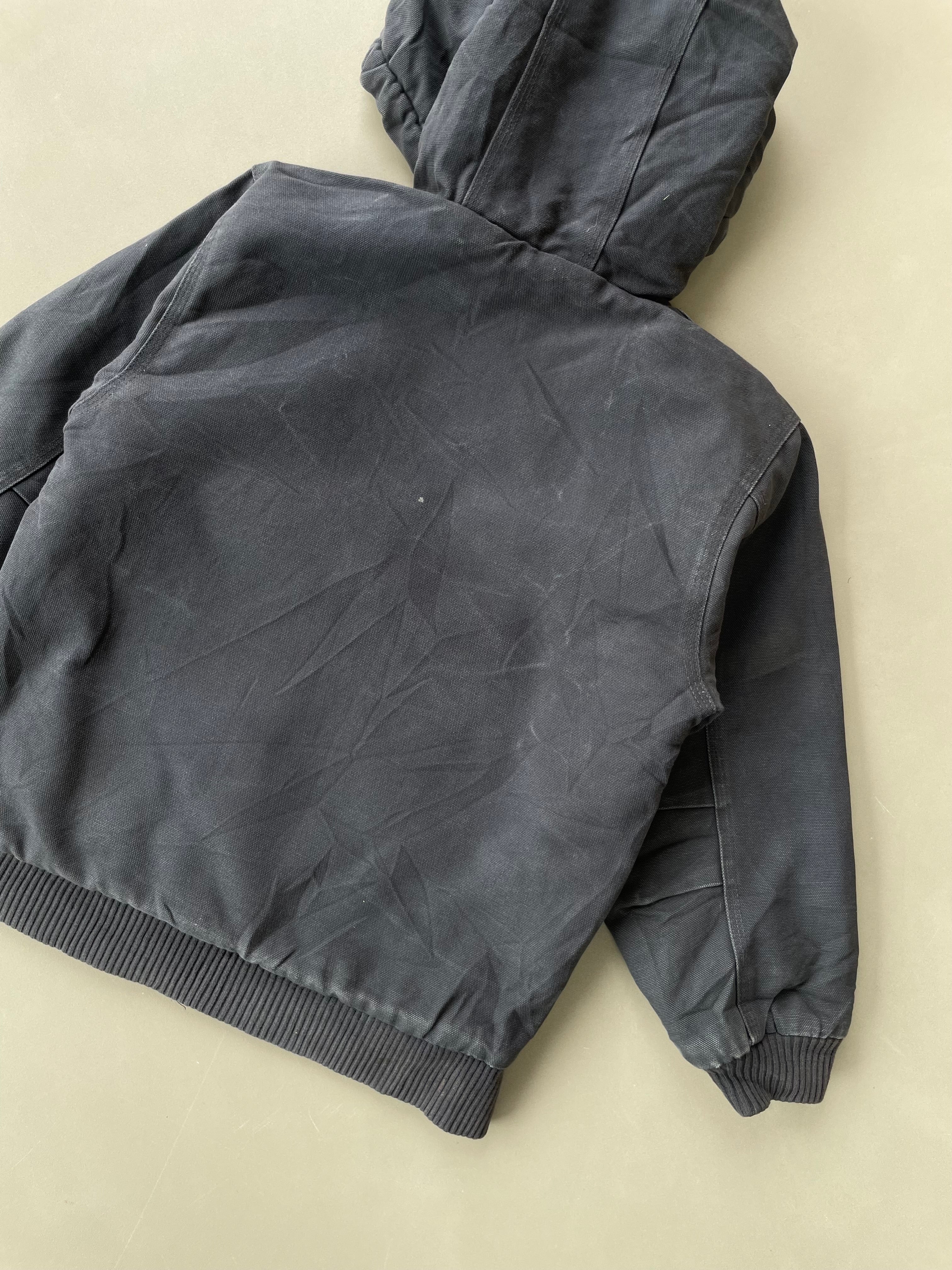 Classic vintage workwear hooded jacket from Carhartt, in the durable canvas material. It's lined with a soft quilted jersey material and it has logo in front. With ribbed cuffs and waist.