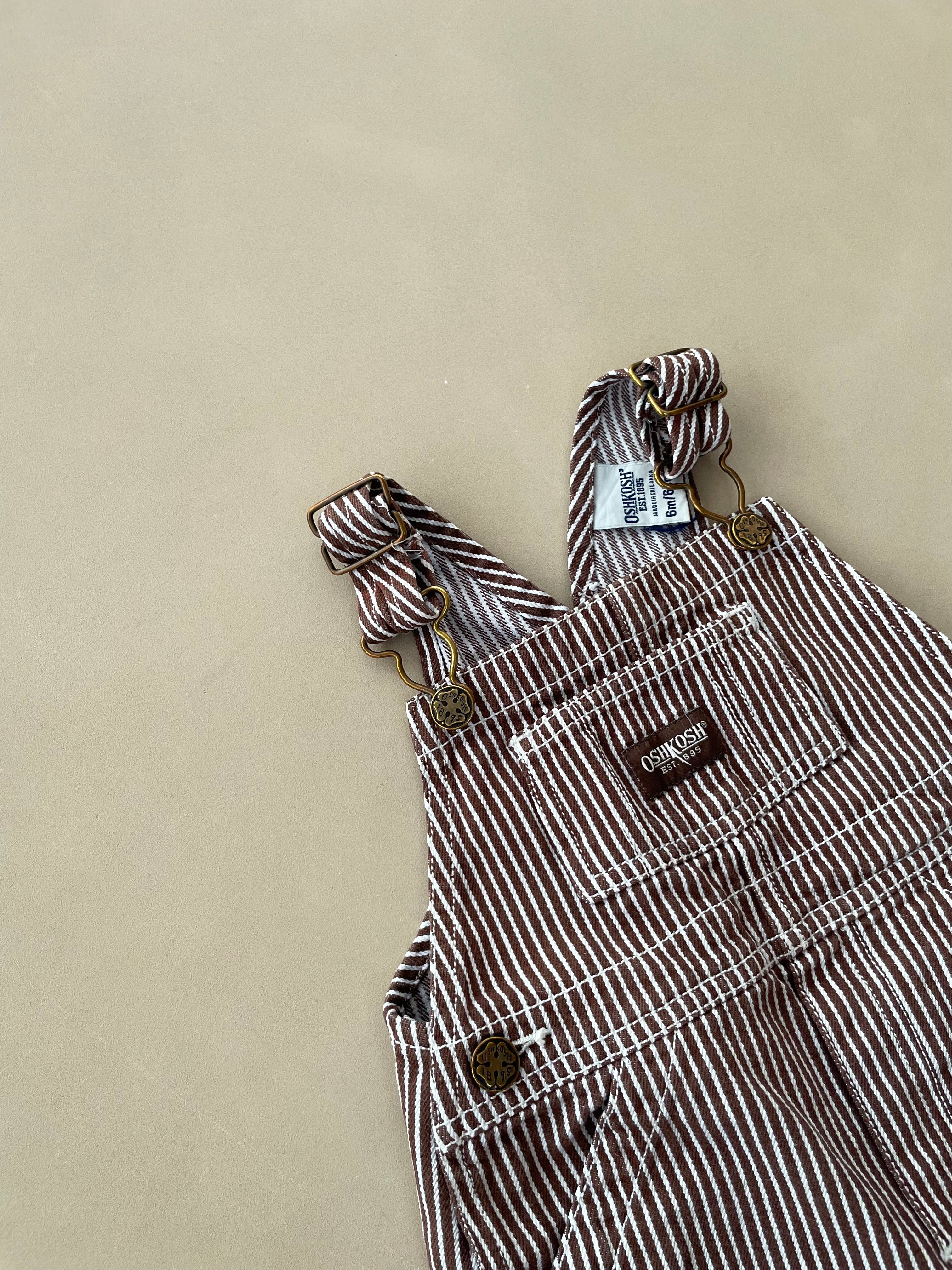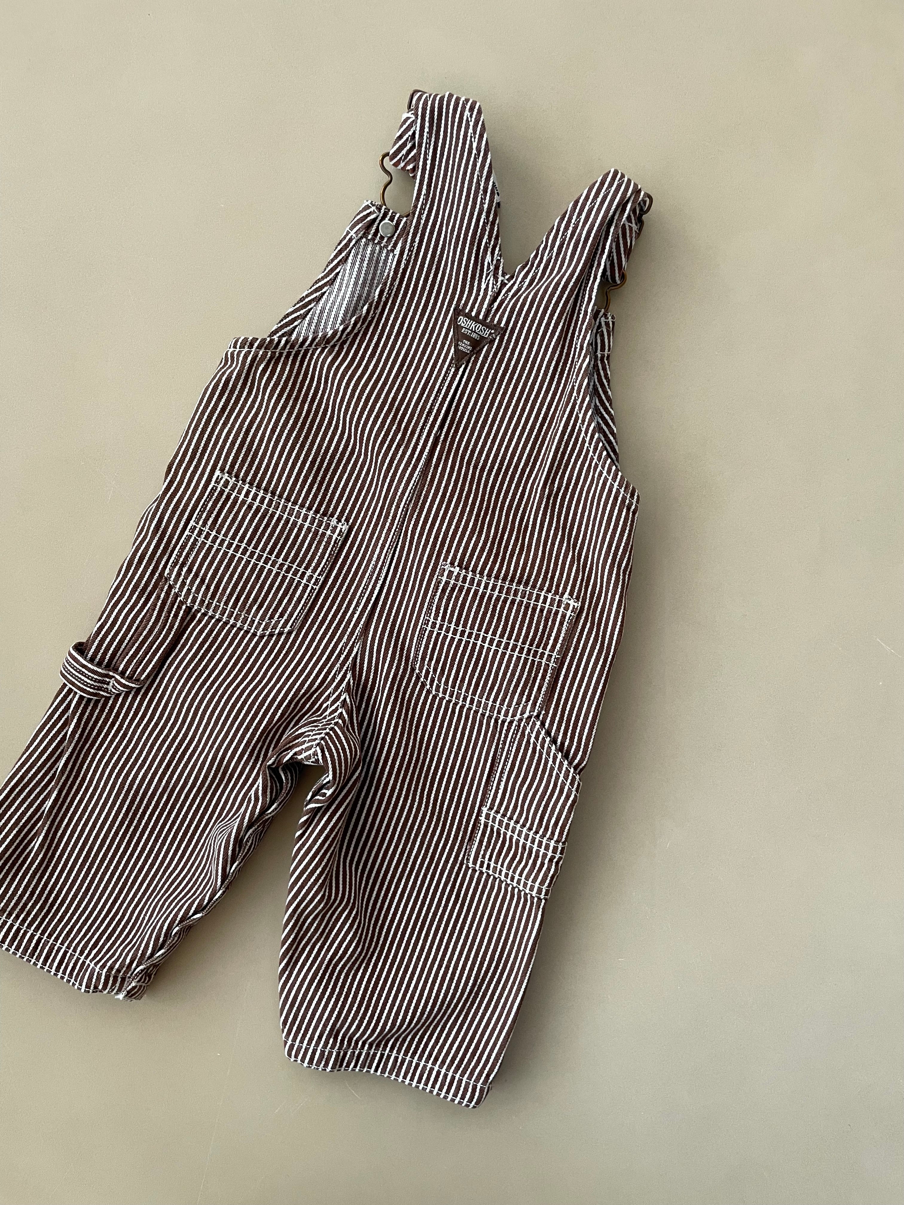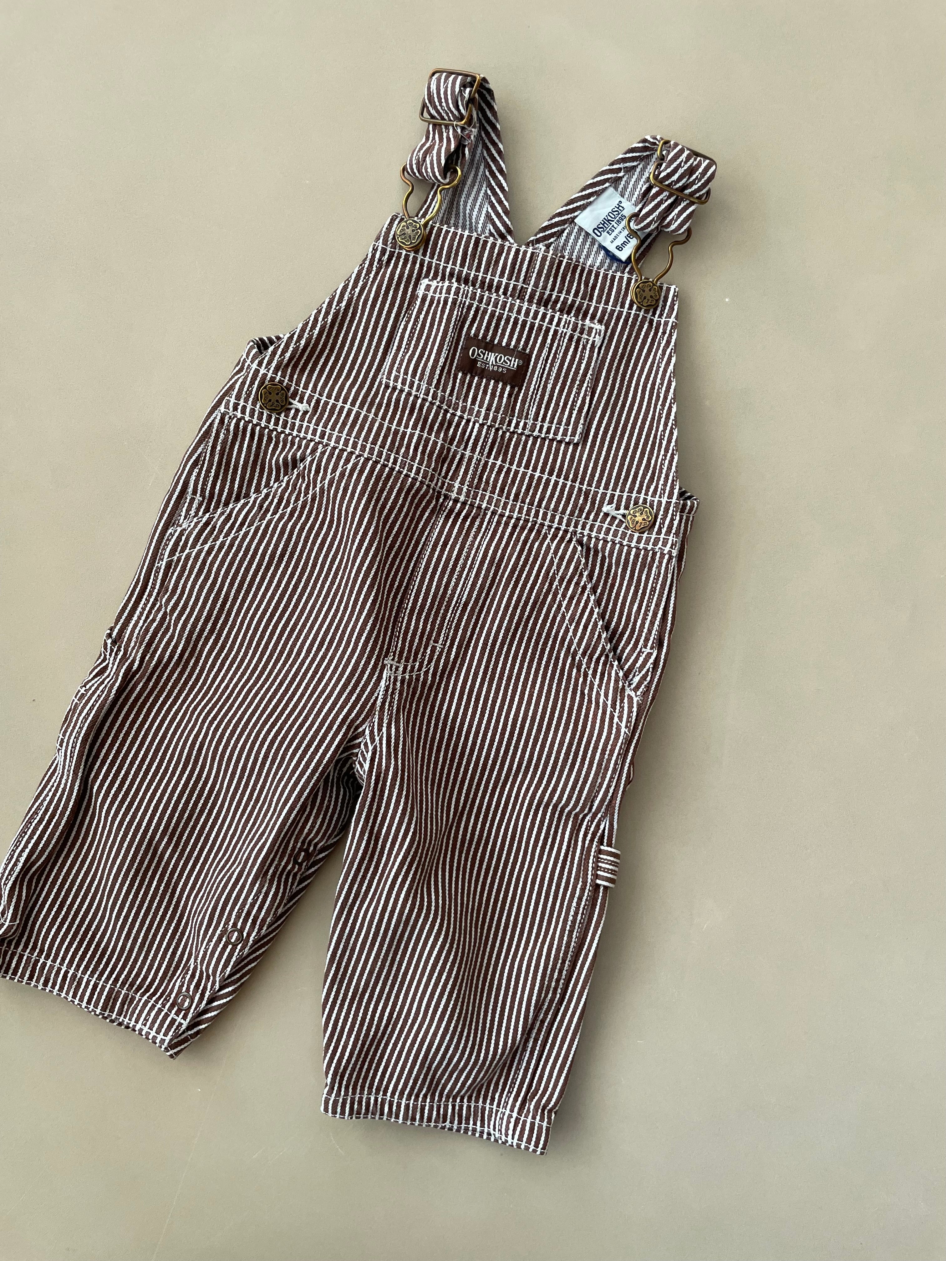 A classic pair of vintage striped overalls from Oshkosh, with Oshkosh branding in front and on back. These are in a very rare brown/white stripe version and they are in a really good condition.
